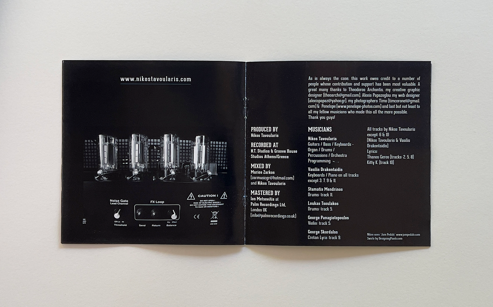 The CD cover and booklet design for musician Nikos Tavoularis translates sound into a strong visual identity. The project focused on capturing the mood and character of his music through thoughtful typography, imagery, and layout.